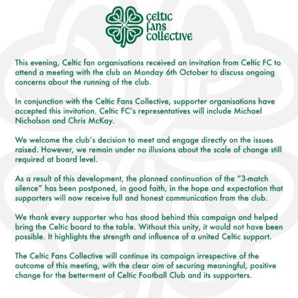 The mood within the Celtic support remains tense after the much-anticipated meeting between the Celtic Collective and the club’s board.