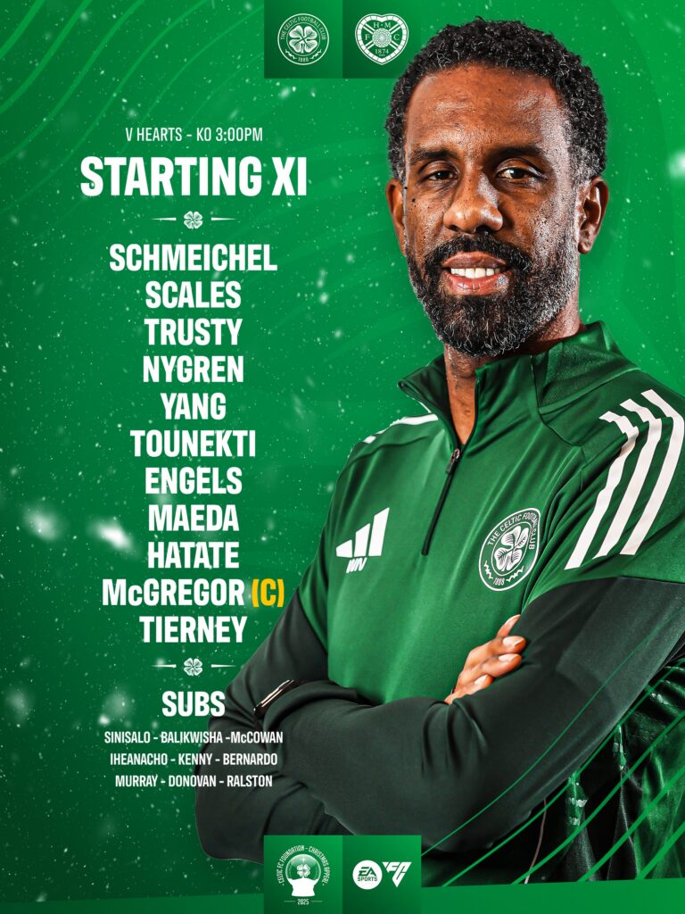 Nancy looks to have gone straight to his trusted three at the back. Kasper Schmeichel starts in goal with Kieran Tierney, Liam Scales, and Auston Trusty forming the defensive trio. It is a bold choice for a first game, although it fits the system he has leaned on throughout his coaching career.